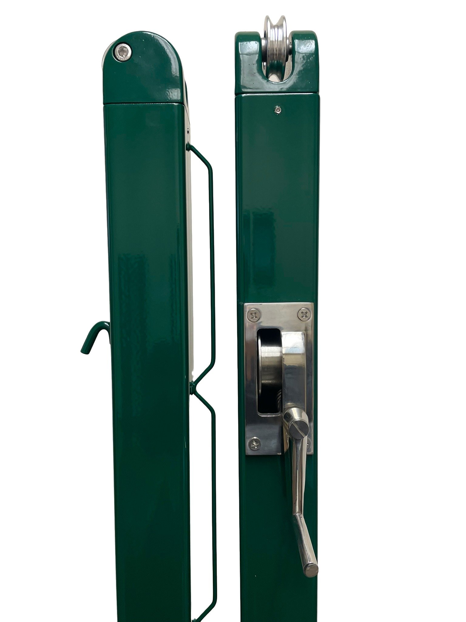 Engineered for professional facilities, the Titan Pro features 3″ square pickleball net posts constructed from 11-gauge USA steel. This system utilizes an exclusive Triple-Coat galvanization process and industrial powder coating to eliminate internal and external corrosion. Every set includes a premium stainless steel internal gear winder for precise, tournament-grade net tensioning.